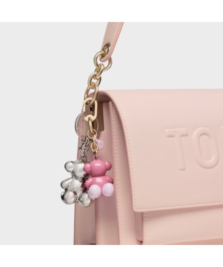 Mini bolso Pop TOUS Brenda de poliuretano en color rosa oscuro. Cierre con botón magnético. Asas fijas de mano y asa bandolera ajustable y desmontable. Incorpora un bonito detalle de oso colgante. Medidas (alto x ancho x fondo): 20 x 16 x 7 cm.