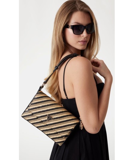 Esta elegante bolso bandolera combina un estilo contemporáneo con la funcionalidad, por lo que es el complemento perfecto para las escapadas de fin de semana. Su cierre superior con cremallera garantiza que tus objetos personales estén protegidos, mientras que la llamativa correa tejida cruzada y desmontable te permite llevarlo como más te guste. Su estética la remata el delicado aplique de Rue St-Guillaume.