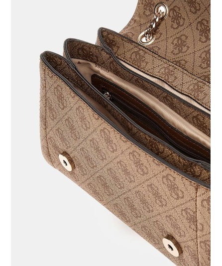 Mini bolso de mano modelo Aldith con detalles metálicos en tono oro y logo central. Dispone de cierre con solapa y botón imantado, asa larga y forro interior personalizado