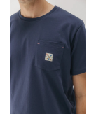 Camiseta manga corta confeccionada en 100% algodón orgánico en color azul marino delavé. Bolsillo en pecho con logo remos. Regular fit y cuello redondo. Detalle cruces bordadas a contraste en la manga.