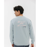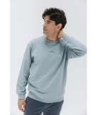 Sudadera confeccionada en 100% algodón orgánico en color azul grisáceo. Logo en frontal y print trasero el mar todo lo-cura. Relaxed fit y cuello redondo.