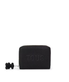 Monedero TOUS La Rue New de poliuretano en color negro. En el interior cuenta con tres compartimentos abiertos para monedas y dos ranuras para tarjetas. Cierre de cremallera. Medidas (alto x ancho x fondo): 8 x 11 x 3 cm.