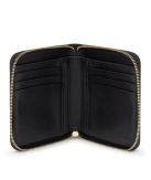 Billetera TOUS City mediana de poliuretano en color negro. Cierre de cremallera. En el interior cuenta con seis ranuras para tarjetas, una para billetes y un compartimento para monedas con cremallera. Medidas (alto x ancho x fondo): 12,5 x 10 x 2 cm